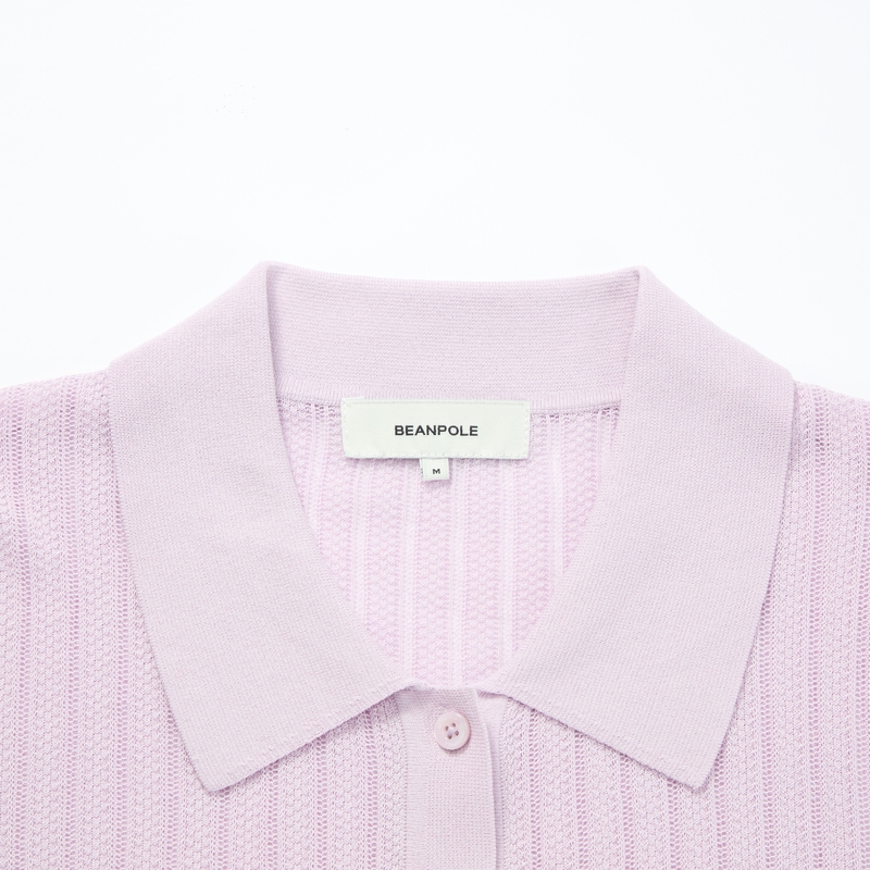 BEANPOLE滨波 秋冬女温柔系休闲度假舒适短袖镂空小翻领针织开衫