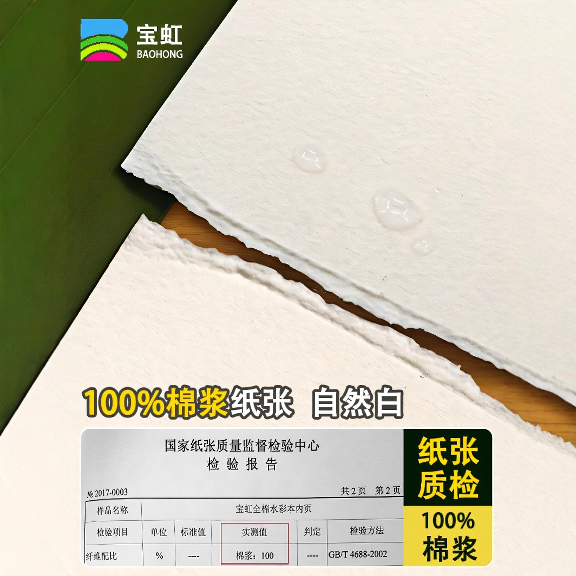 宝虹水彩纸300g全棉浆8k16K4开四面封胶中粗细纹中国保定专用画本