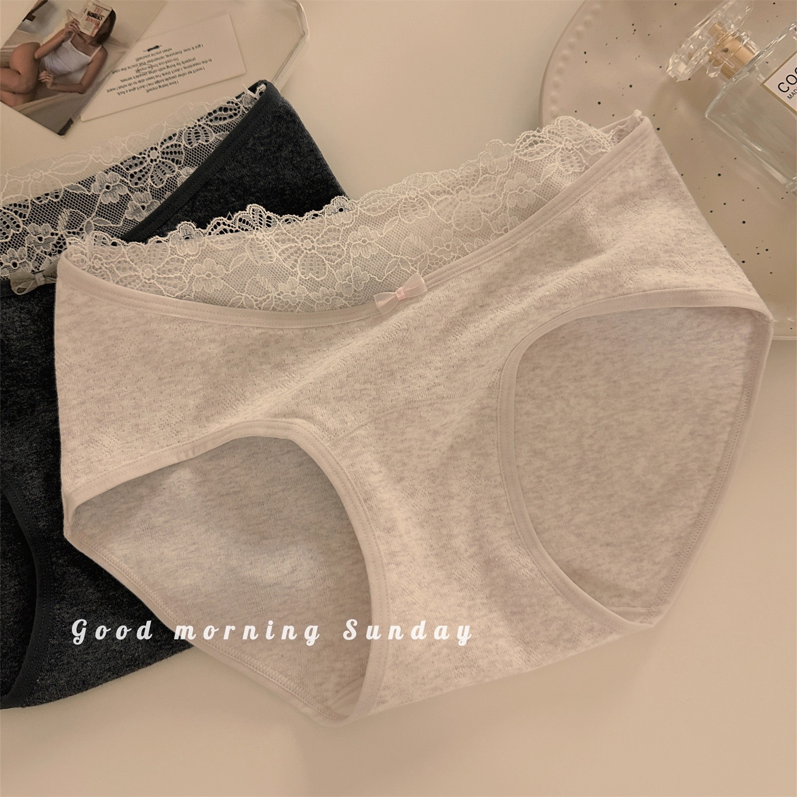 少女感纯棉内裤女全棉10A抑菌加长裆蕾丝边无痕中腰A类精梳棉内裤