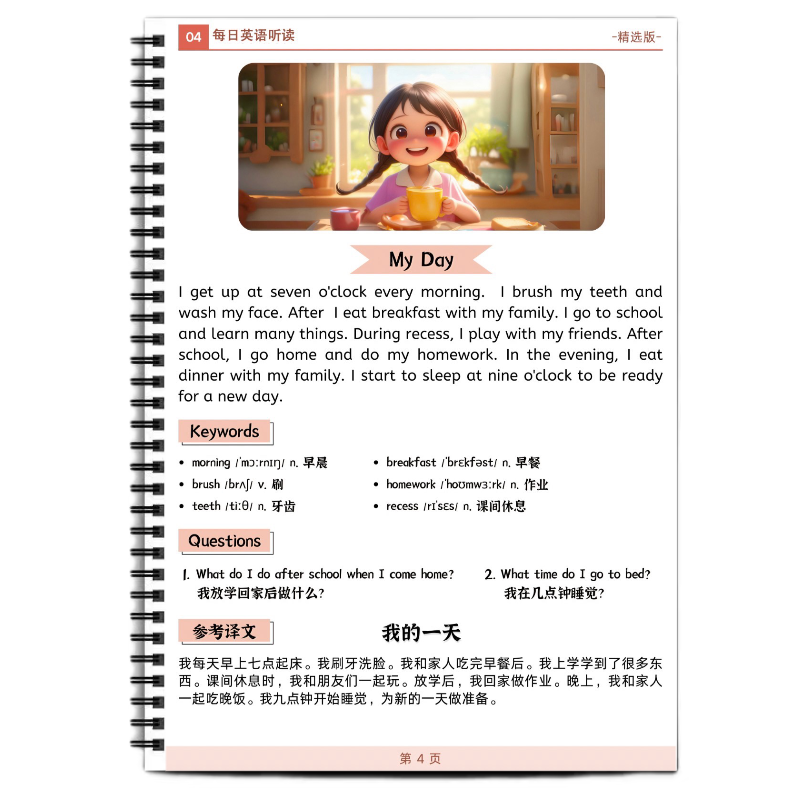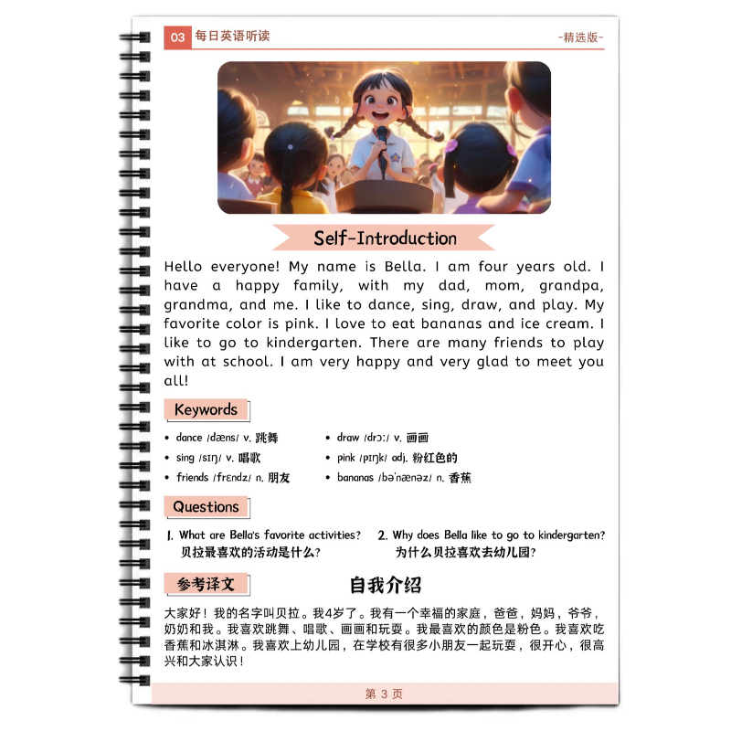 英语自然拼读小短文100篇阅读坚持100天英语听读小短文打卡每日一篇彩印艾宾浩斯抗遗忘学英语英语词汇彩色笔记中英文对照每日一篇