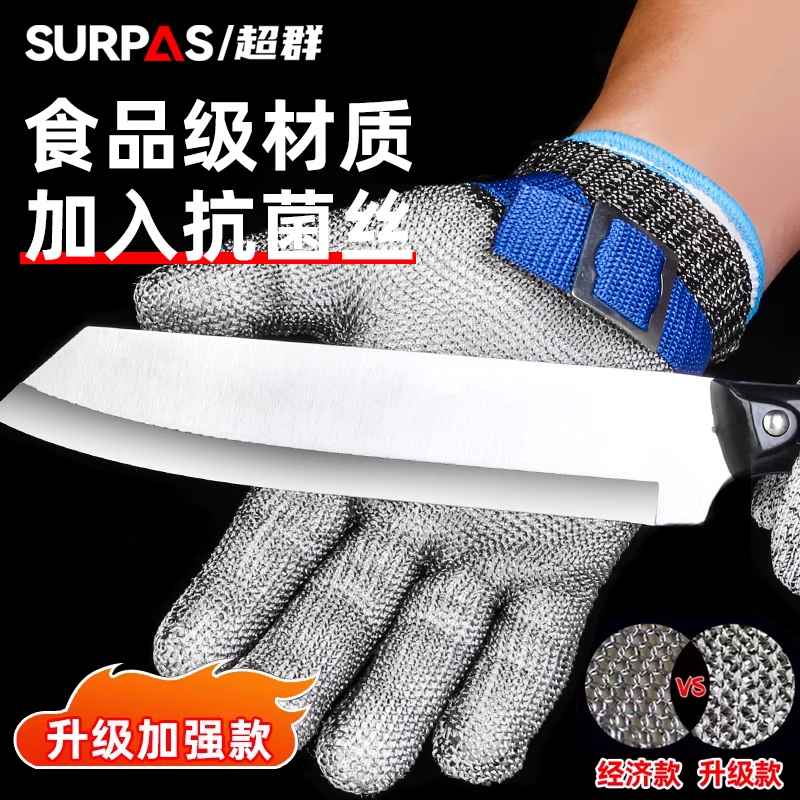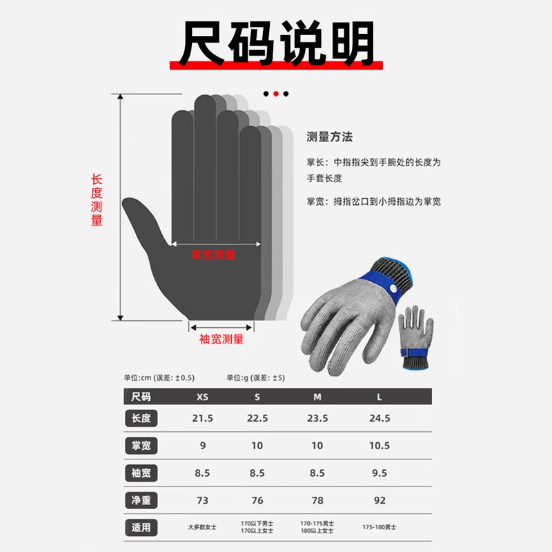 防割手套新款五指钢丝防切金属9级防护加强款不锈钢防扎干活杀鱼