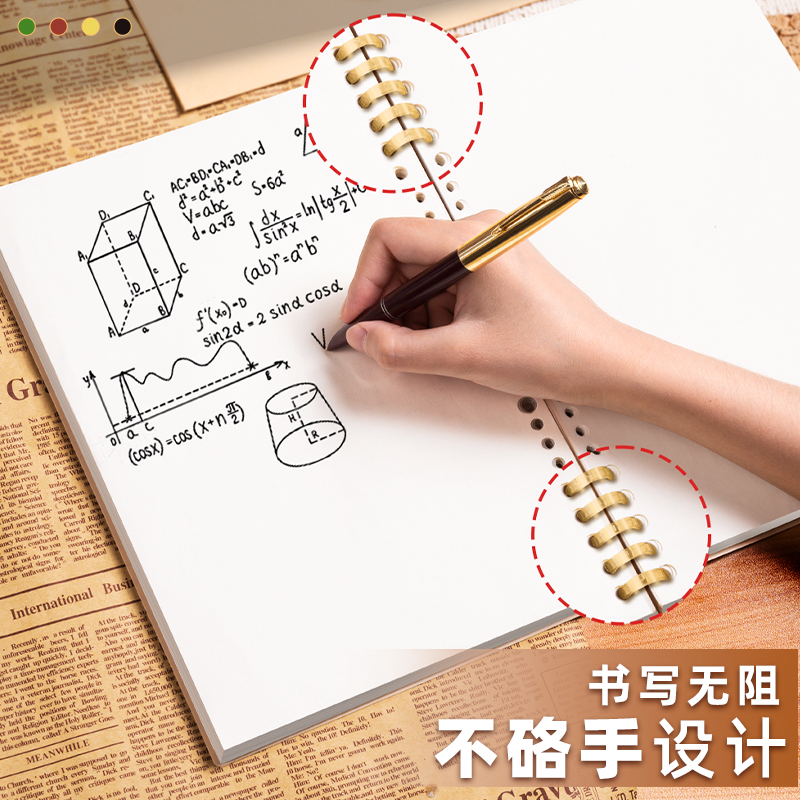 上翻活页笔记本可拆卸方格本网格本子高颜值初中生专用高中格子小方格方形本复古考研加厚2025新款文具草稿纸