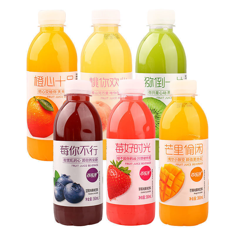 果汁饮料夏季新鲜饮品多口味芒果橙子猕猴桃360ml瓶装维c果汁饮品