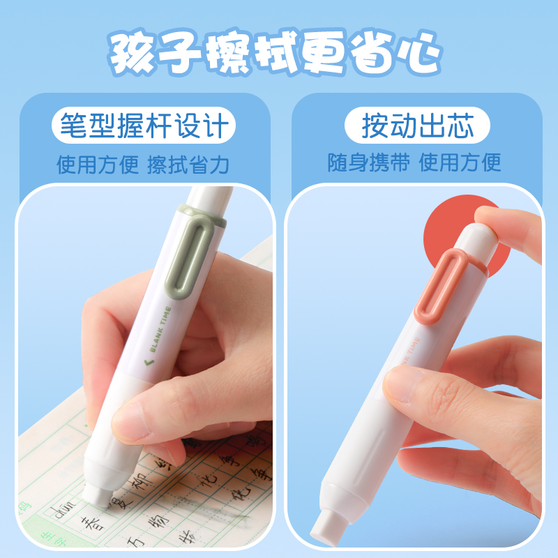晨光按动橡皮擦免费刻名字小学生专用铅笔擦少屑不留痕六一儿童节礼物定制4b小胖丁笔式橡皮擦字成线美术橡皮