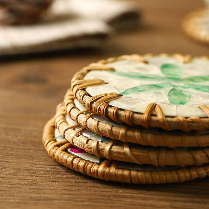 舍里越南藤编杯垫贝壳手工隔热垫圆形家用桌面茶杯垫防烫碗垫餐垫
