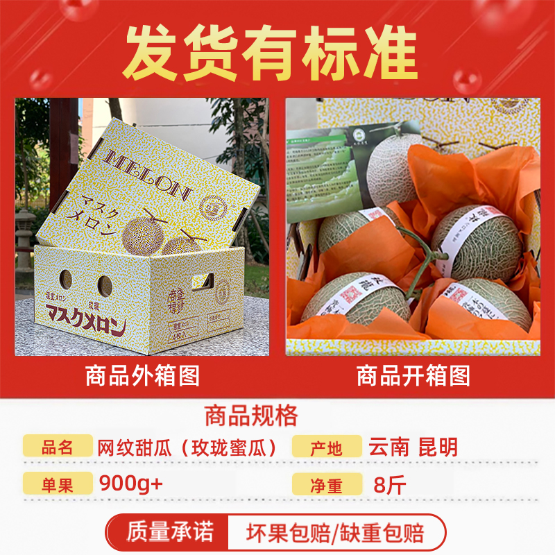 【烈儿炸烈双11 】正宗玫珑蜜瓜8/4斤网纹瓜当季一藤一瓜软糯多汁