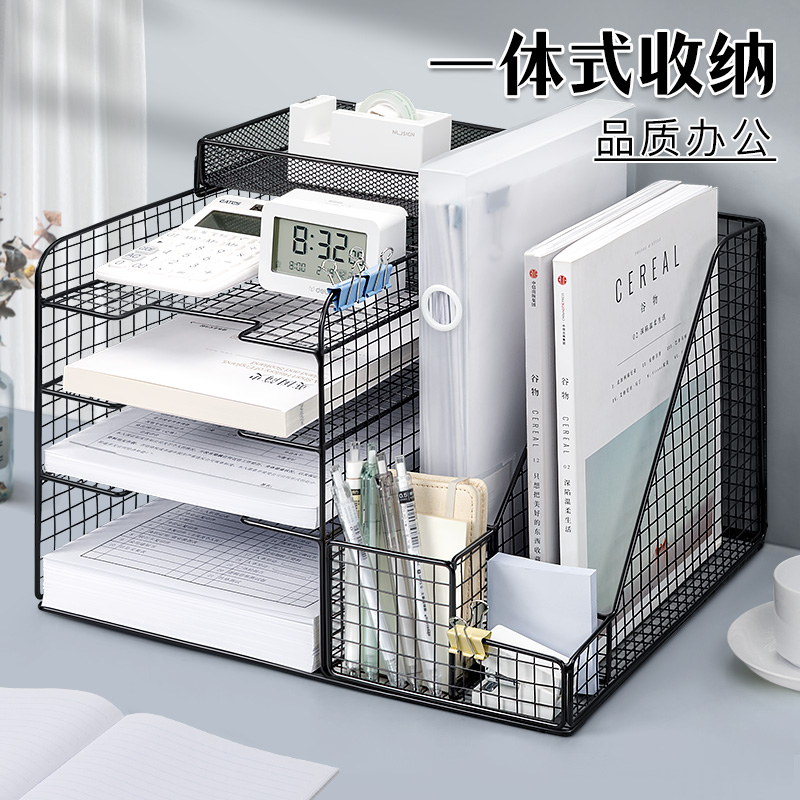 办公桌收纳置物架文件收纳盒办公用品文件架桌面书架多层大容量文件框文件夹A4纸资料档案整理架金属书立架