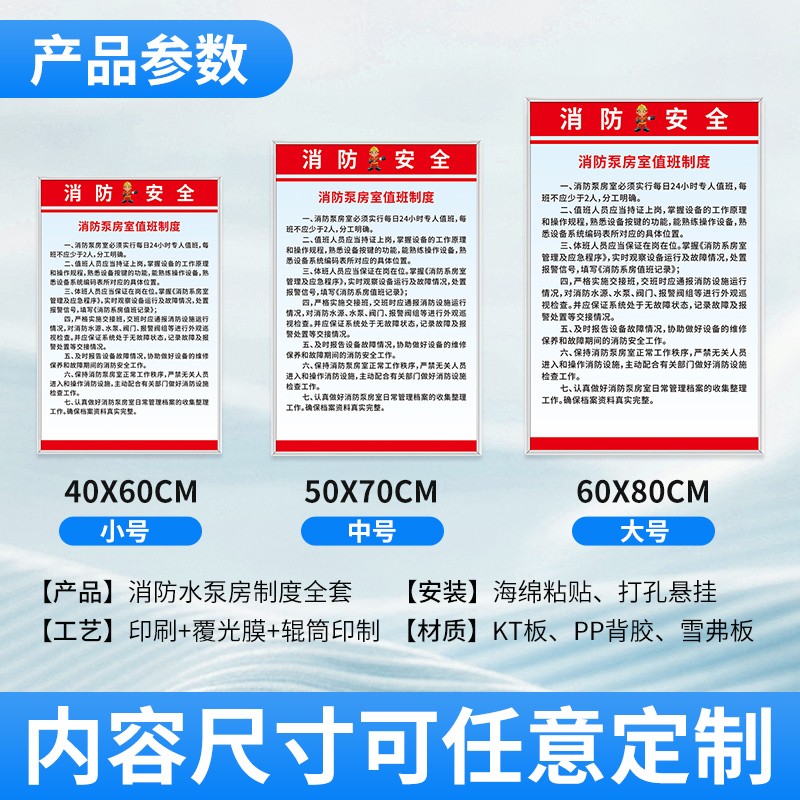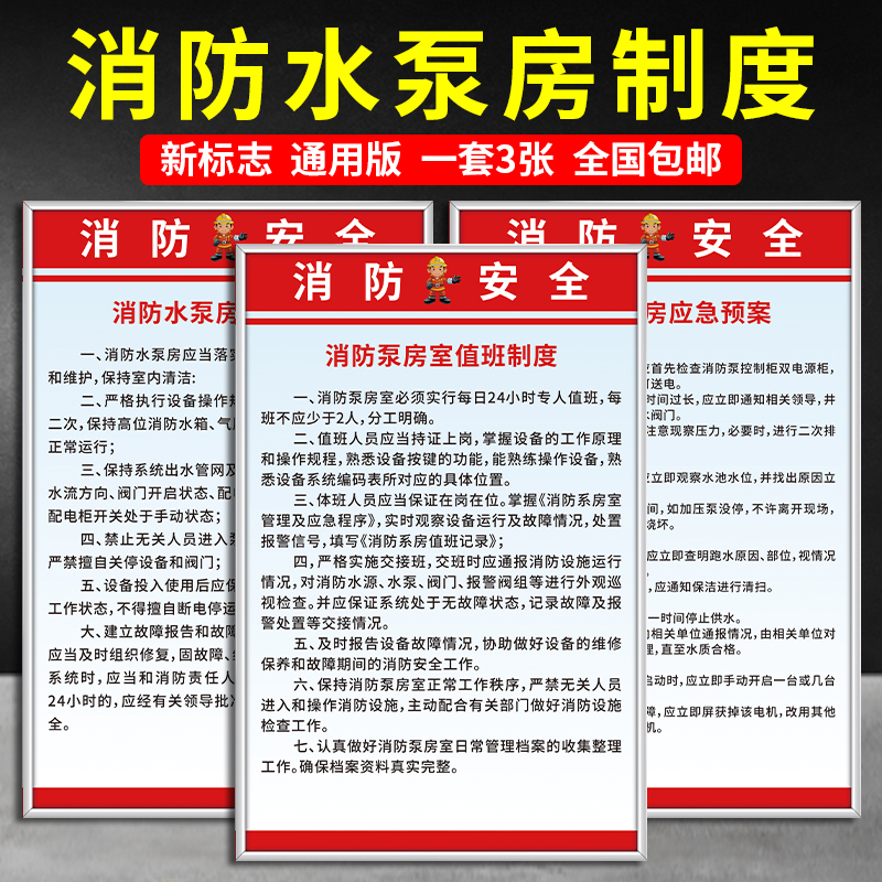 新版消防水泵房安全管理制度牌应急预案操作流程图上墙贴值班室人员岗位职责规程生活泵房警示牌标语挂图定制