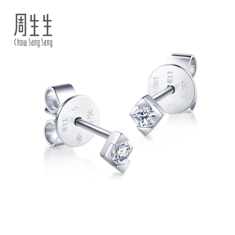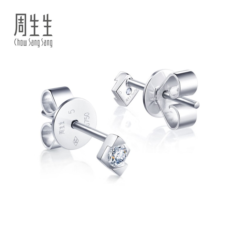 周生生钻之颂都会之颂18K白色黄金钻石耳钉钻石耳饰女29226E
