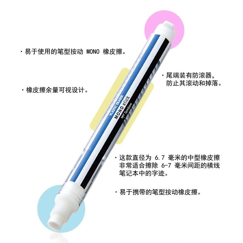 日本Tombow蜻蜓MONO新品橡皮雾面stick笔形按动式素描绘画橡皮笔美术学生专用替芯考试擦的干净的细节橡皮擦