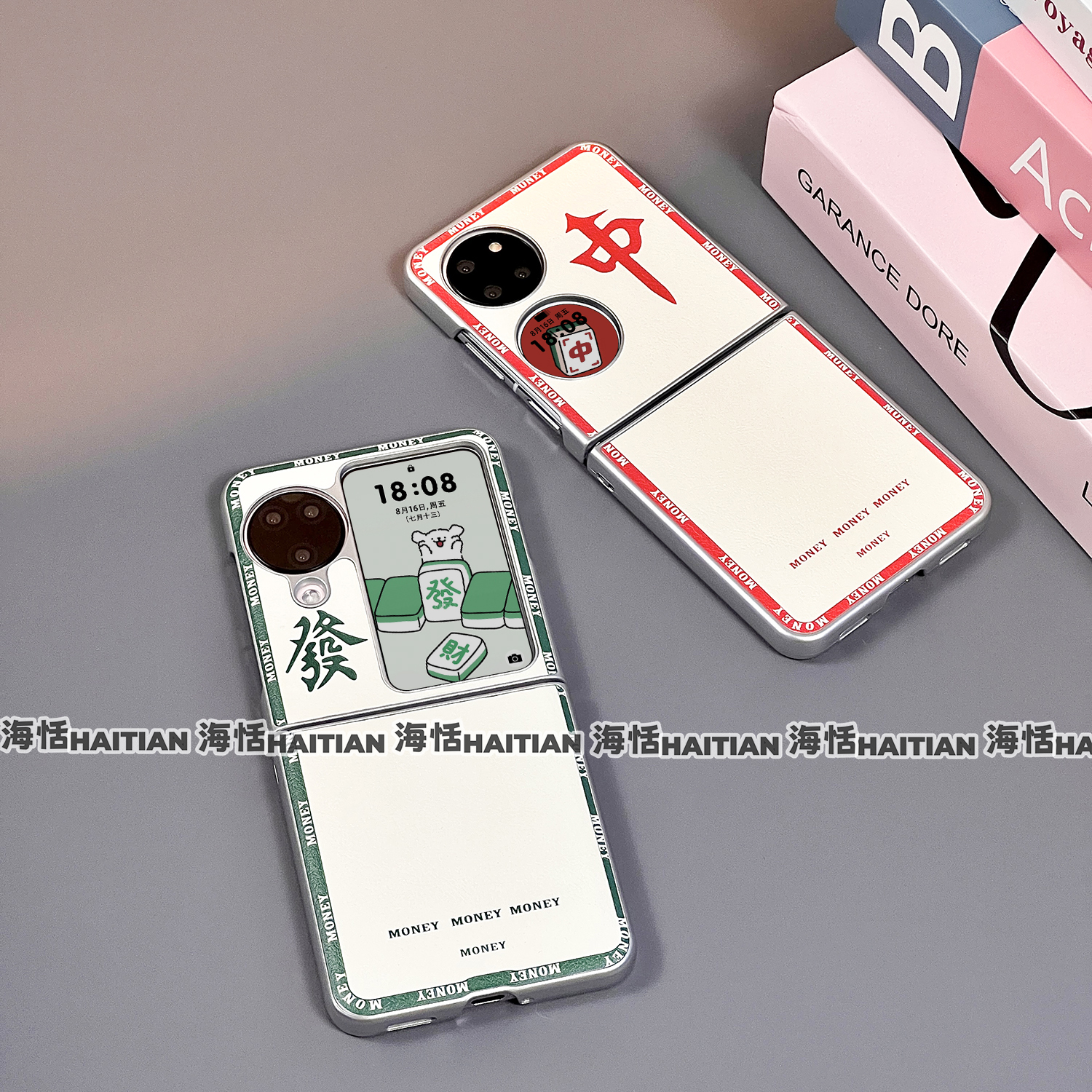 海恬 麻将红中发适用华为pocket2三星zflip6折叠屏n3flip手机壳novaflip荣耀vflip保护套purax小米mixflip2硬