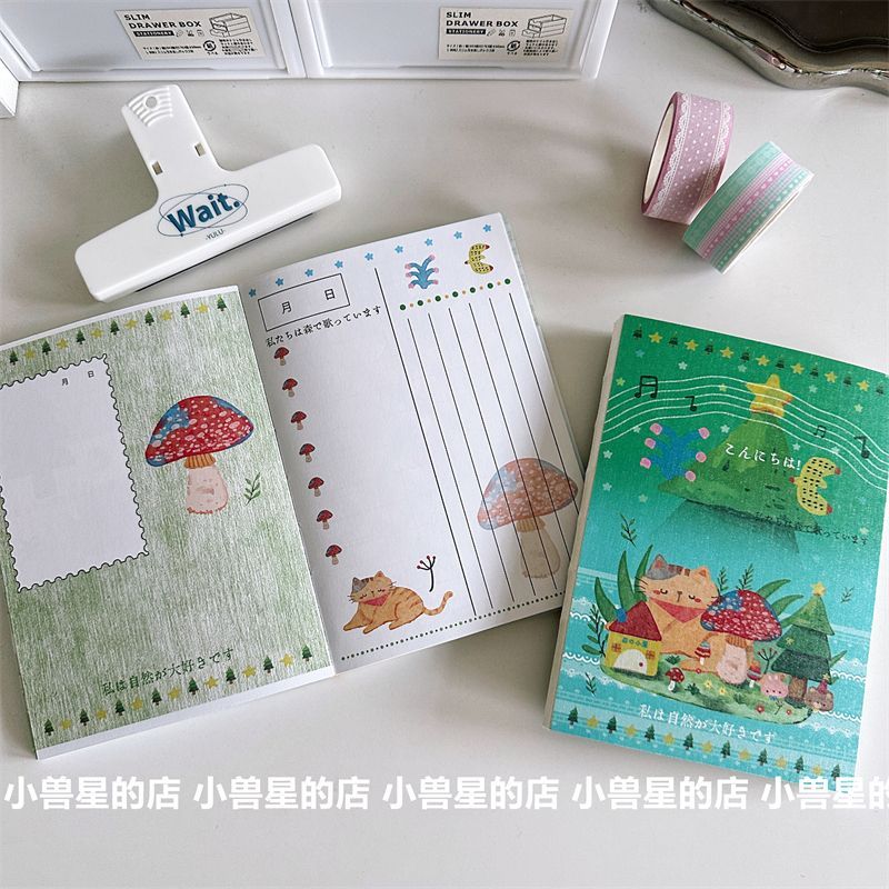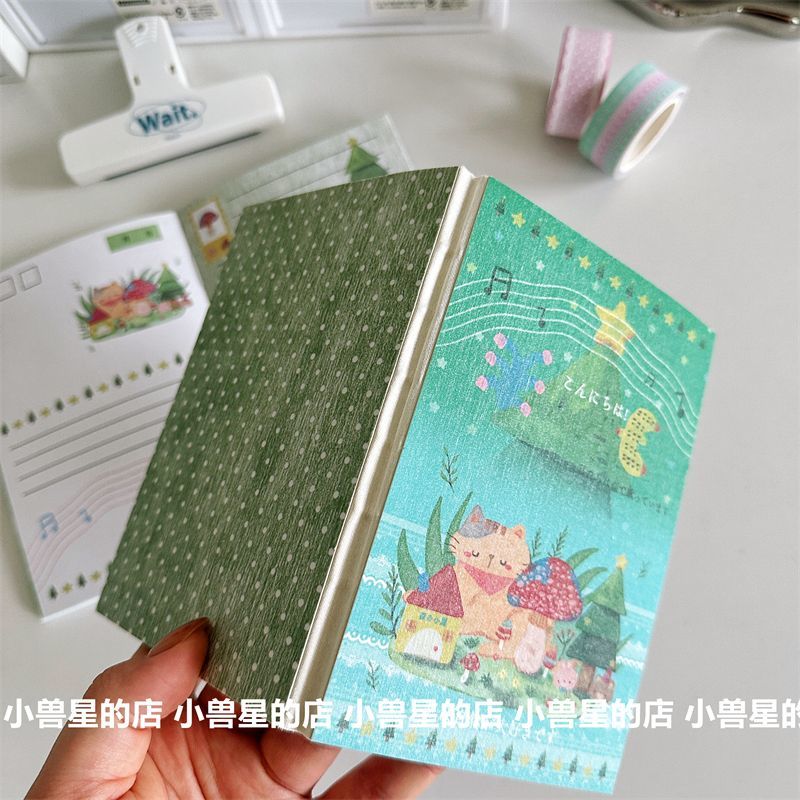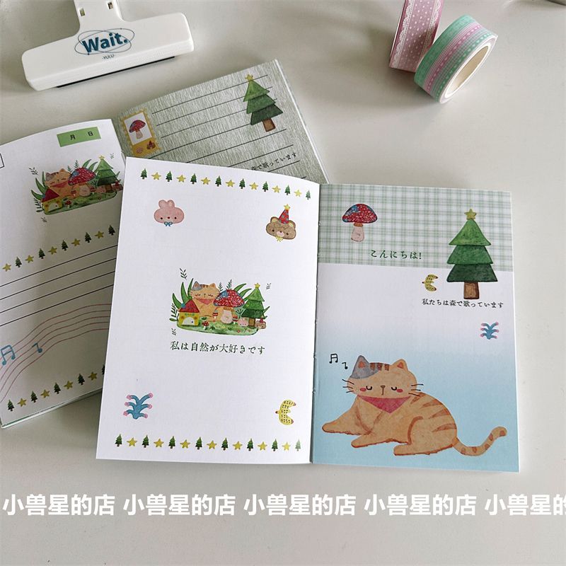 原创古早猫咪森林A6手账本笔记本彩色内页定页本学生书写本子文具