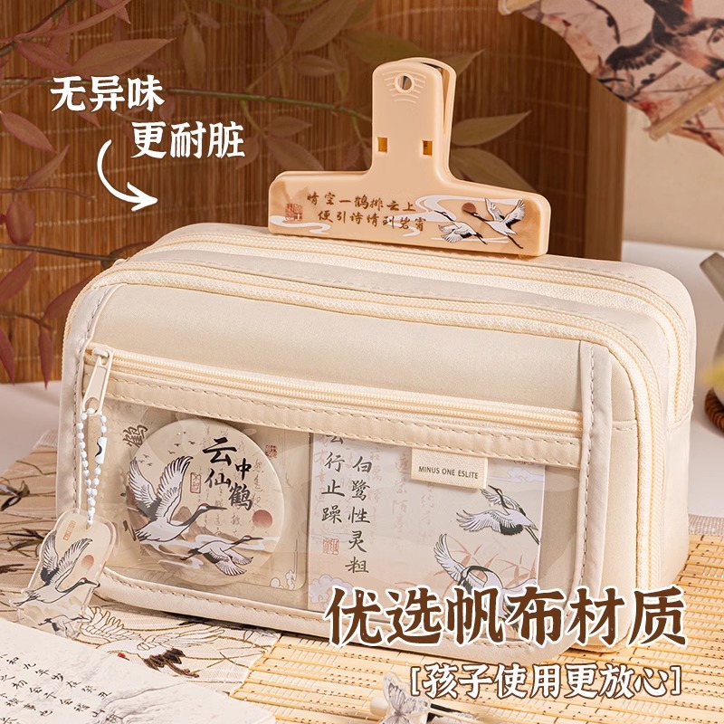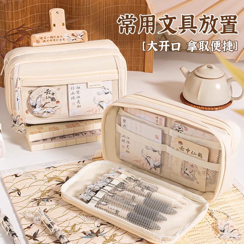 2025女生新款文具盒新中式国风笔袋高颜值ins风男孩小学生初中男生古风铅笔盒女孩透明痛包大容量学霸文具袋2