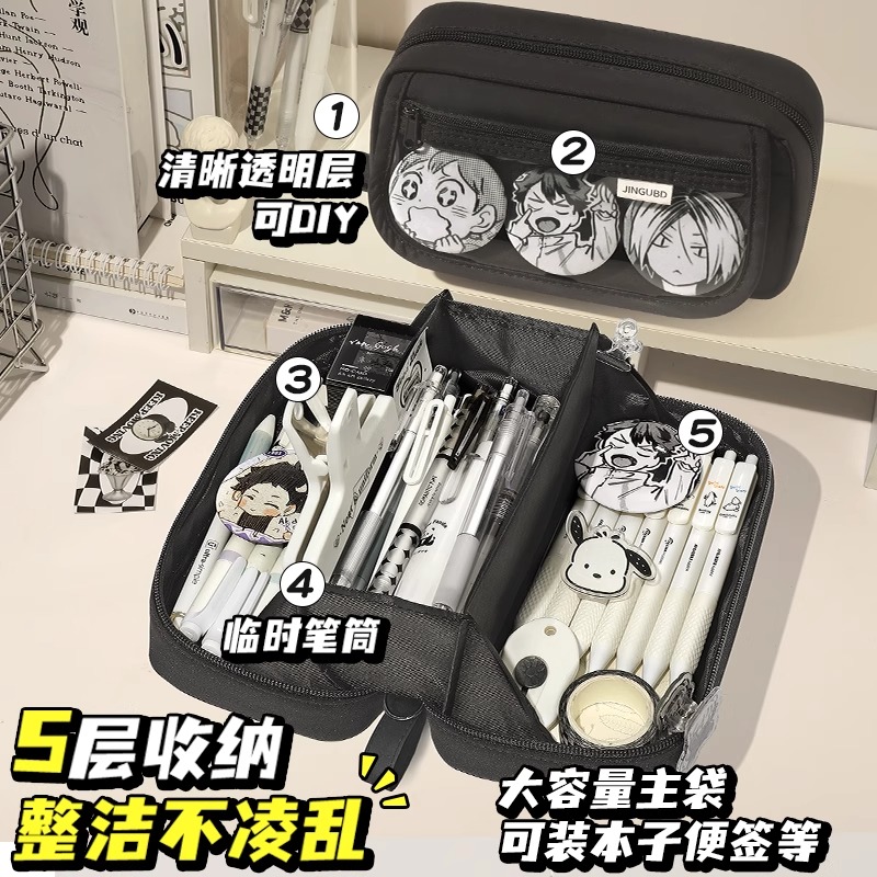 2025新款8层超火文具盒男孩款初中生铅笔盒大容量黑色火山笔袋男孩子简约高颜值女孩子款女生痛包ins风高中生