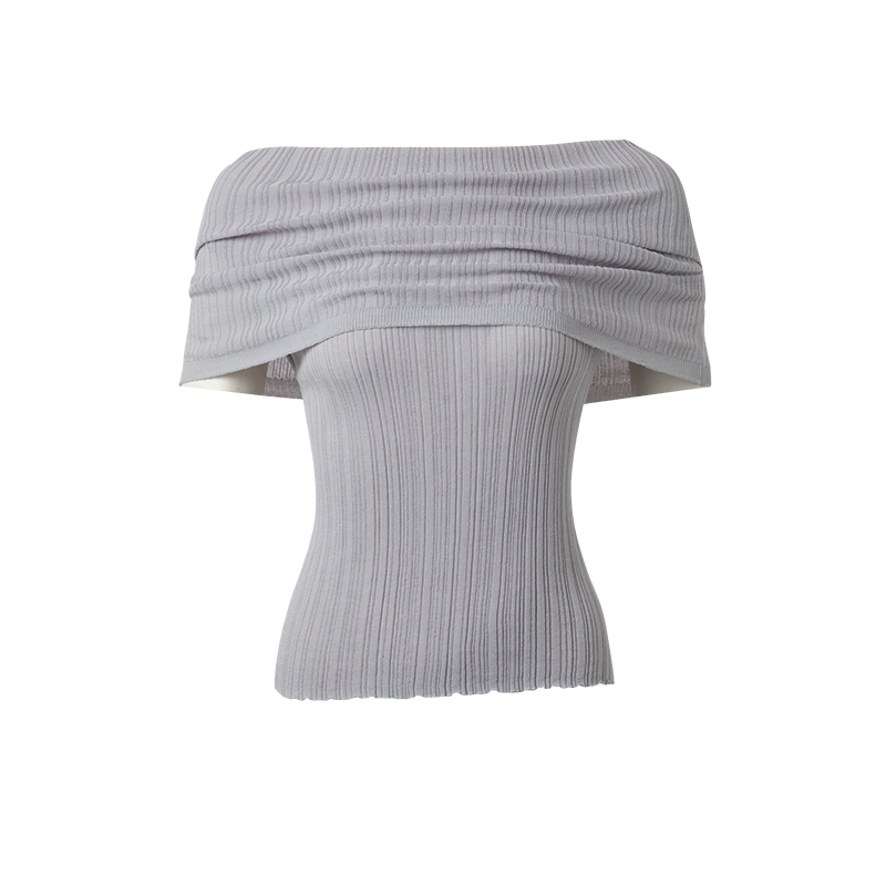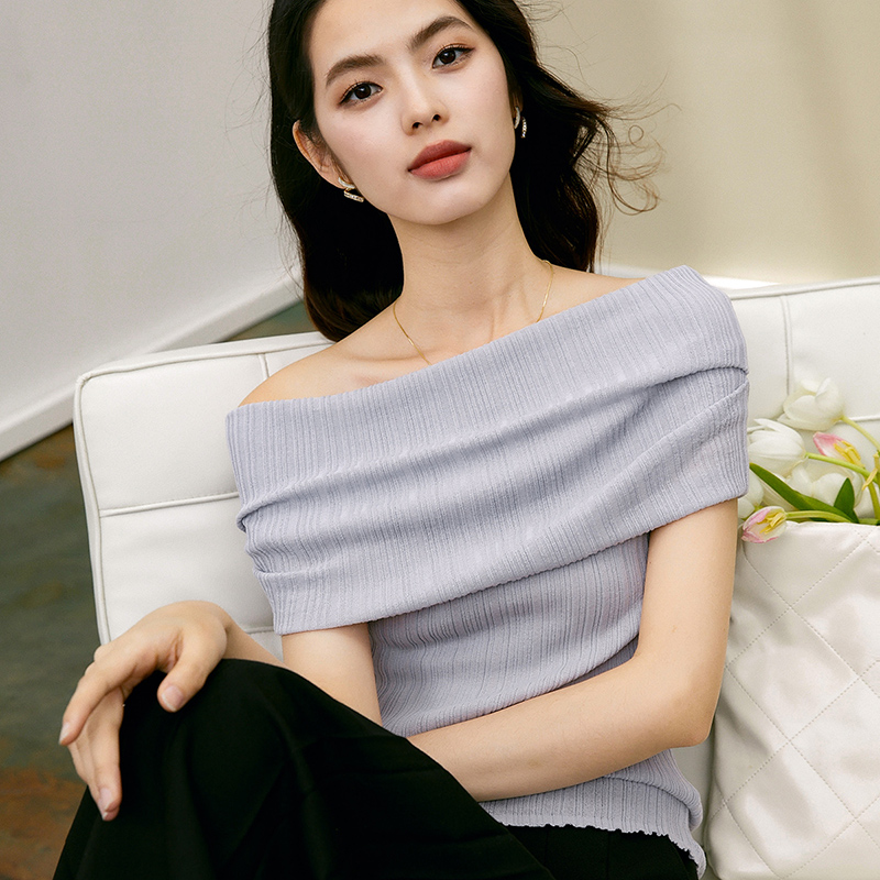 晚白【断码清仓】2025早短袖气质一字领高弹棉质针织短袖女