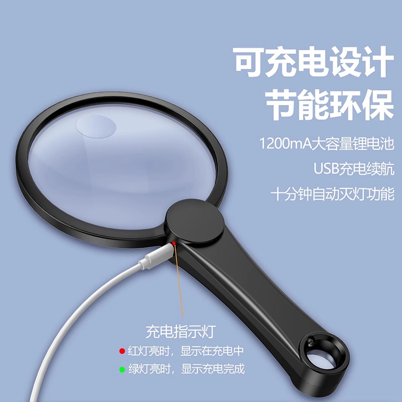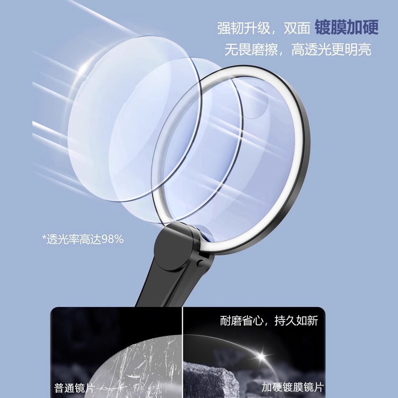 德国镀膜放大镜100倍高清正品老人阅读用看书手持带灯鉴定专用500