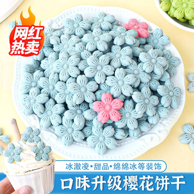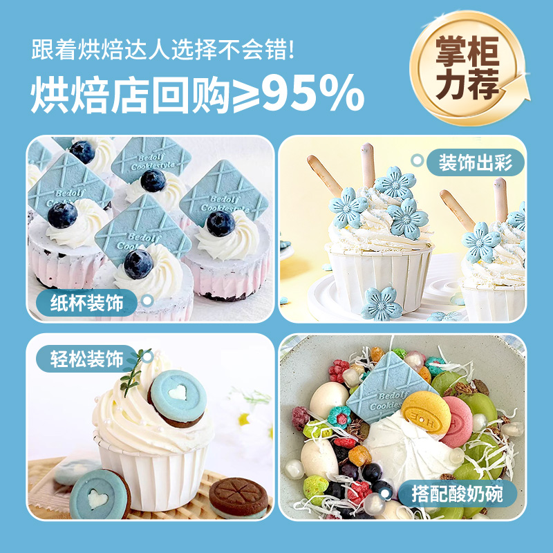 蓝色饼干 干蛋糕装饰海盐味摆件冰淇淋酸奶碗配料纸杯甜品烘焙插