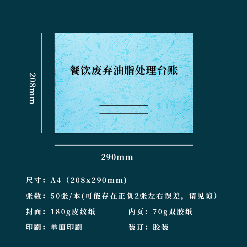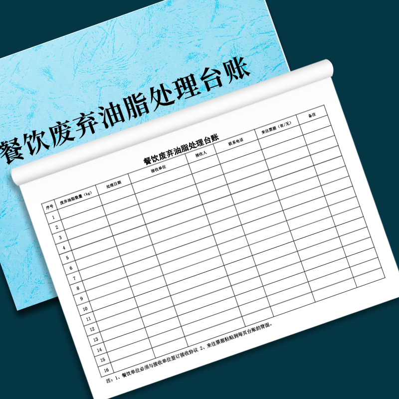 餐饮废弃油脂处理台账饭店餐馆食堂餐饮行业食堂泔水回收处理登记本记录册污水垃圾废弃物销毁记录登记本册表