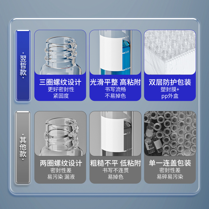 翌哲 2ml透明/棕色进样瓶液相色谱玻璃样品瓶安捷伦取样瓶顶空瓶含垫盖蓝盖试剂瓶1.5/2ml试剂瓶化学实验器材