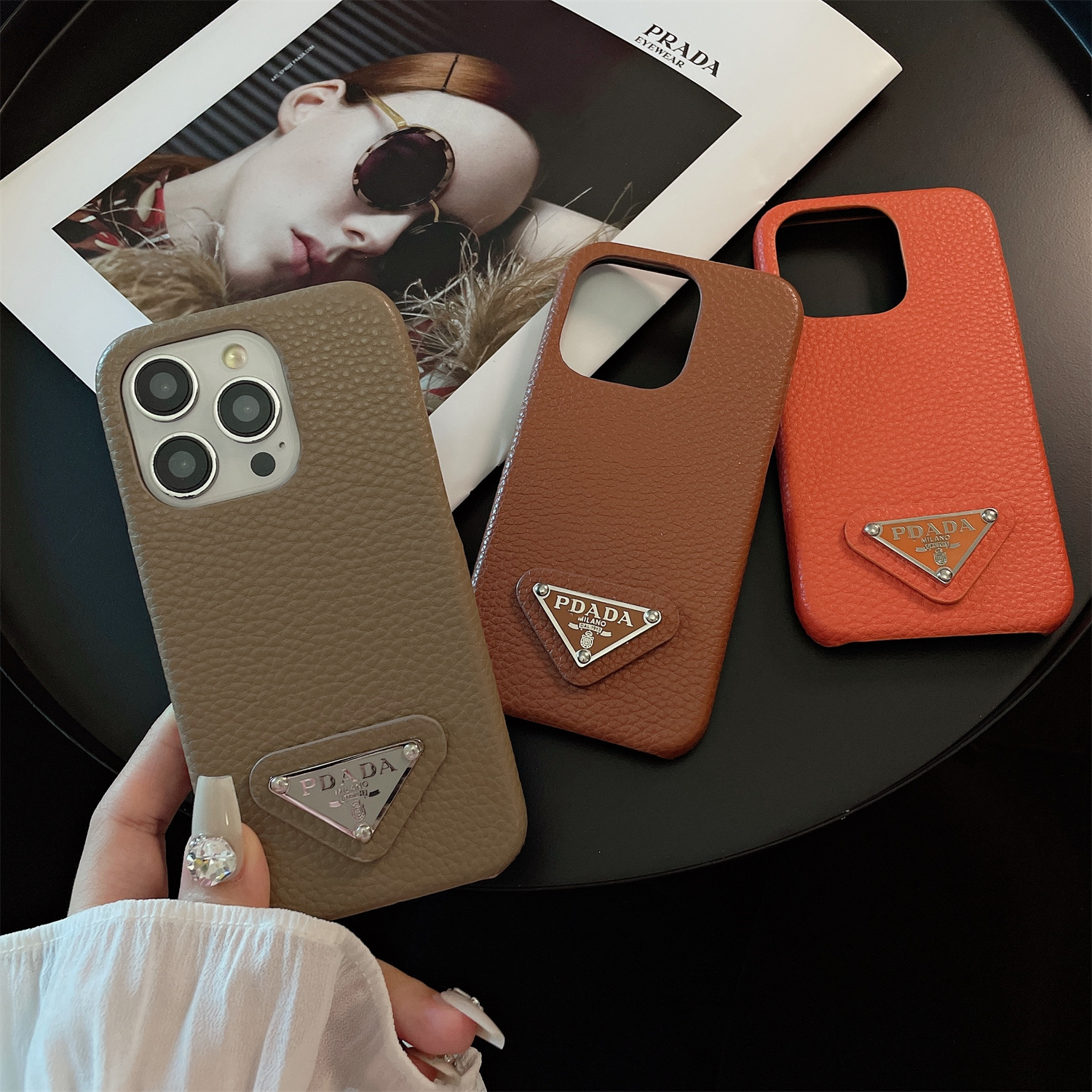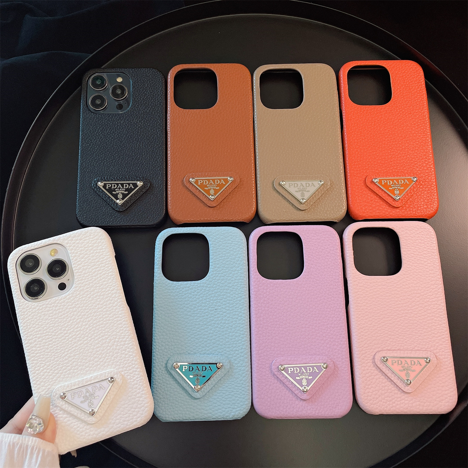 新款个性潮牌16荔枝纹三角P标大象灰15适用苹果14promax手机壳iPhone13男女12pro皮质11简约17air纯色保护套