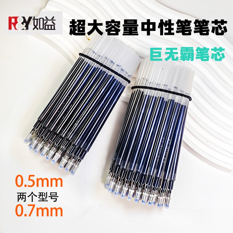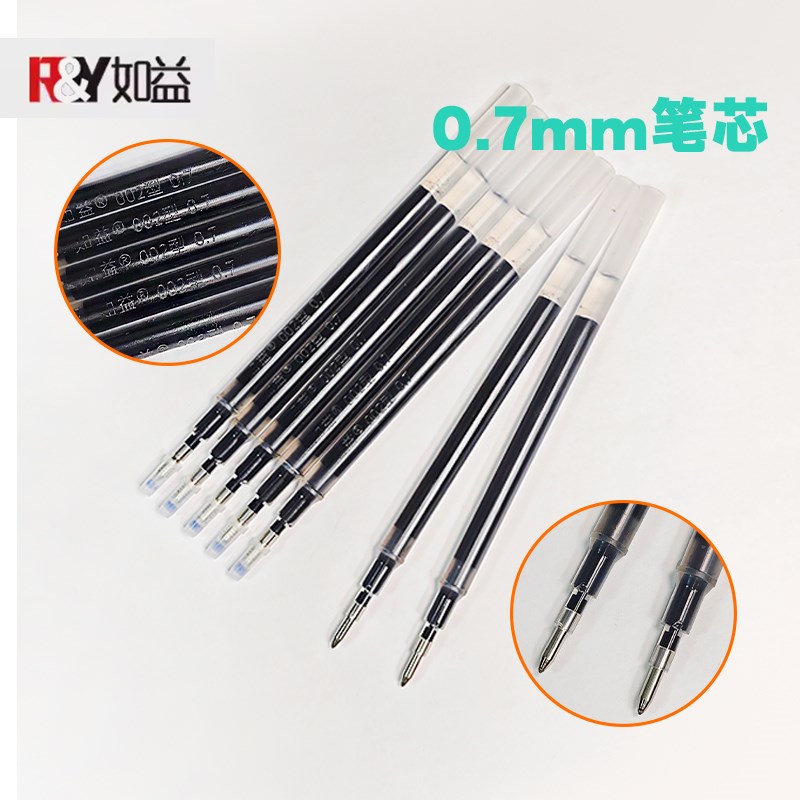 如益001型002型003型004型大容量0.5中性笔芯0.7碳素黑色笔芯