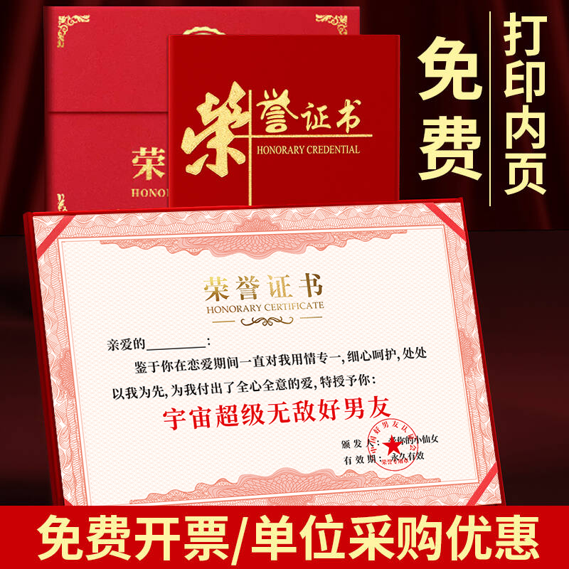 好男友证书趣味搞笑暖男证520奖状荣誉证书送女友的礼物生日卡片恋爱周年纪念日七夕情人节情侣搞怪证书定制