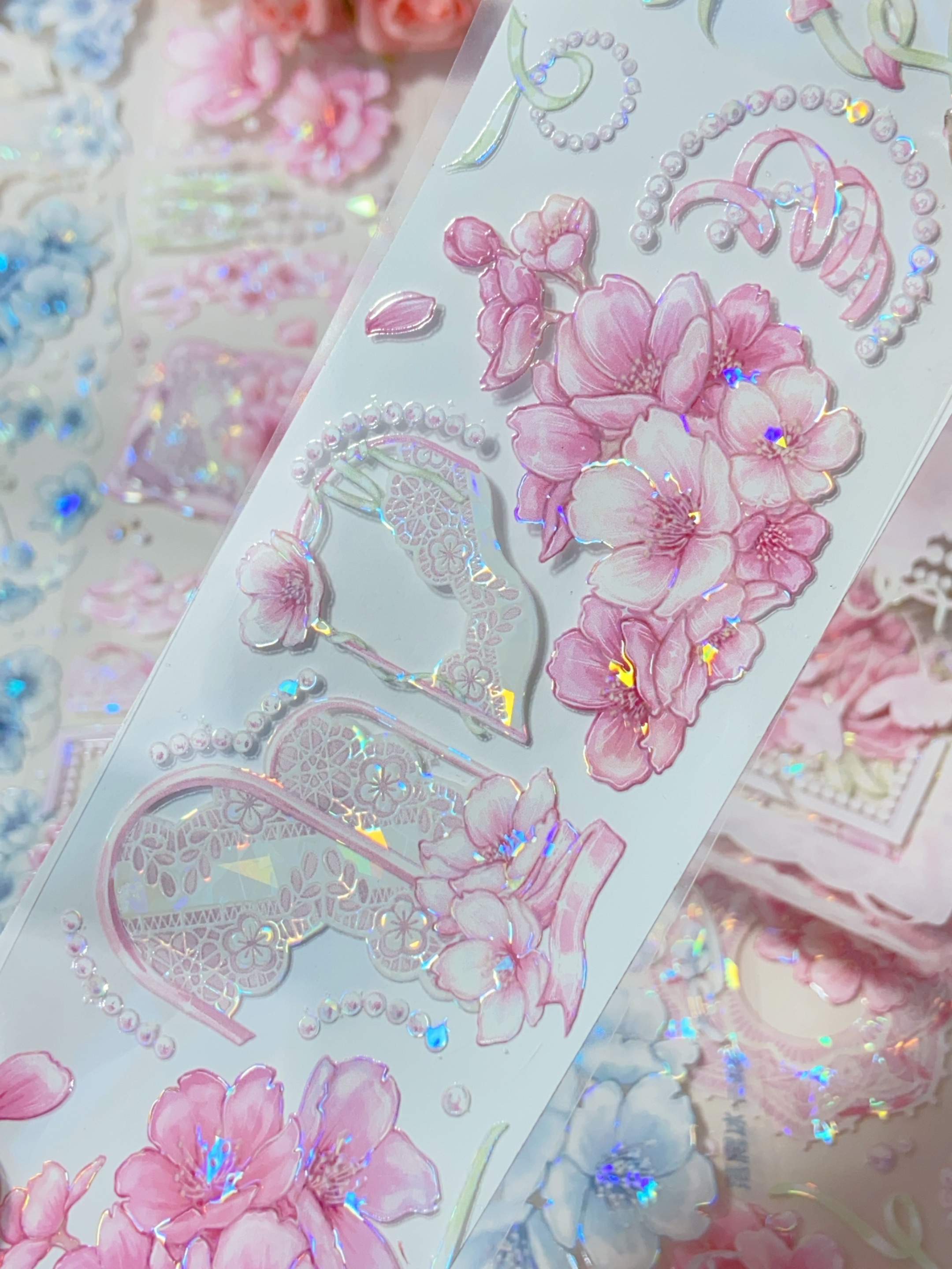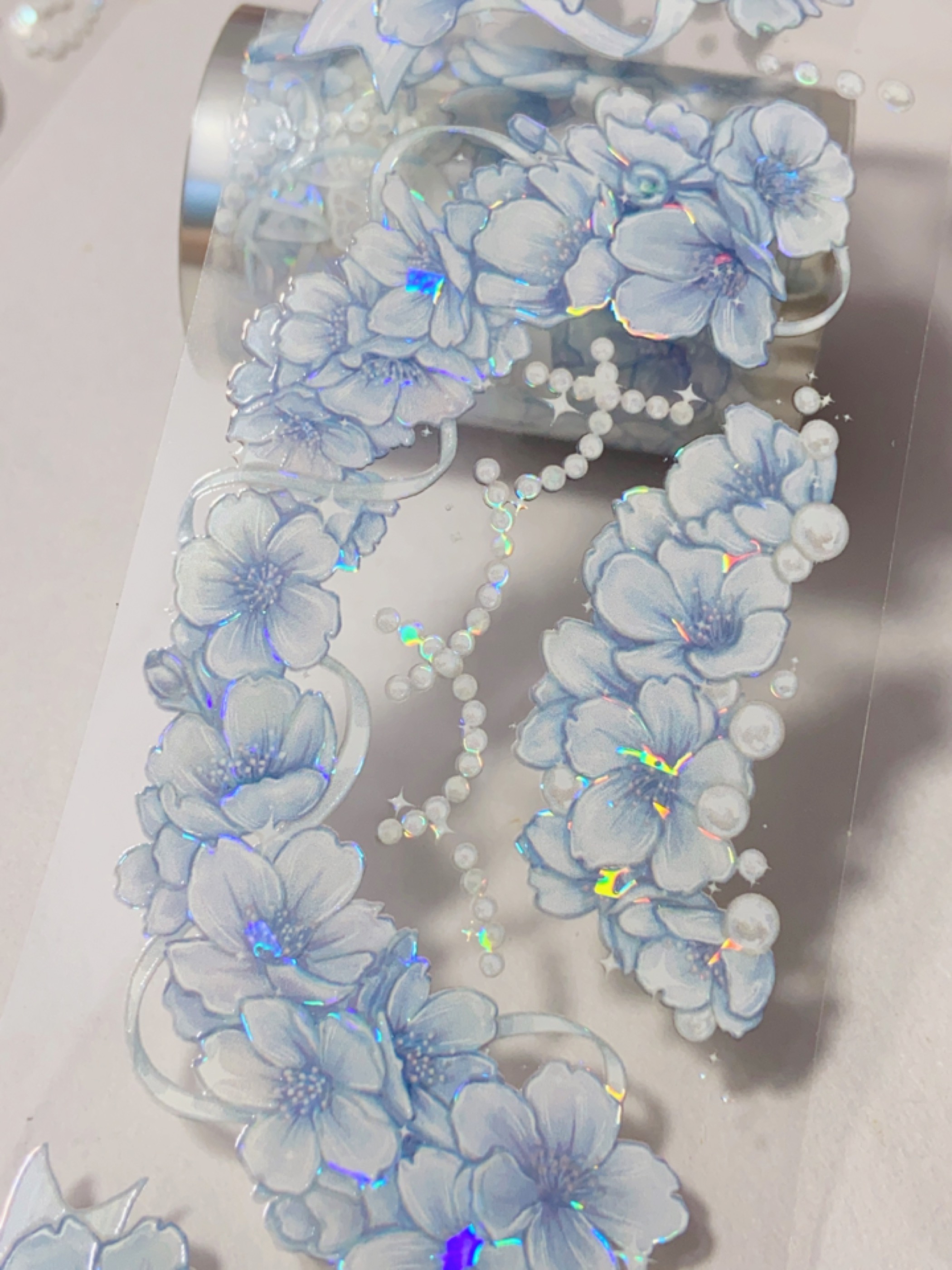 手帐流麻咕卡胶带花花落樱冰羞PET和纸手账diy素材贝壳光贴纸分装