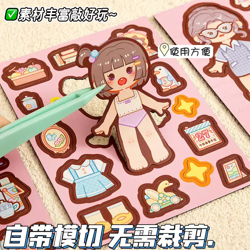 萌崽新款果冻贴纸安静书卡皮巴拉女孩免裁剪diy材料包儿童益智玩具