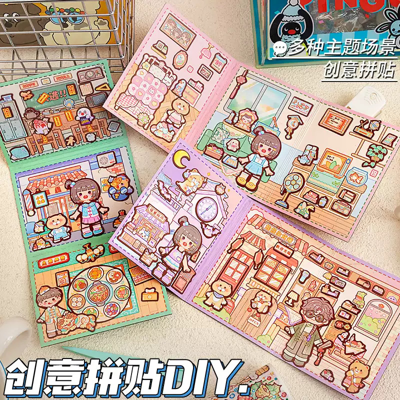 送镊子)造景贴纸微缩场景合集本贴纸本立体换装贴纸女孩儿童diy防水贴画亲子小游戏解压小屋玩具装饰小图案