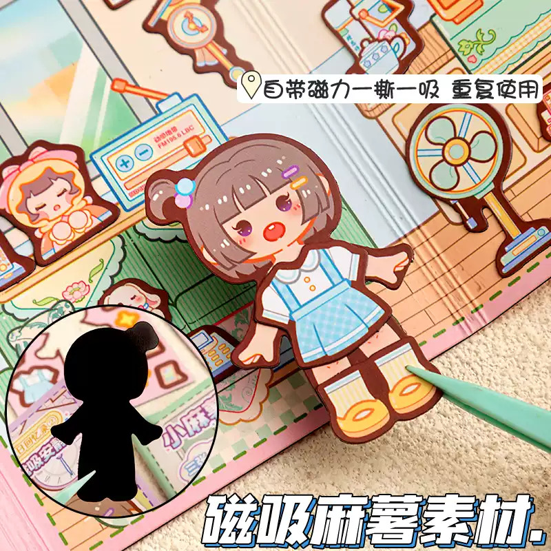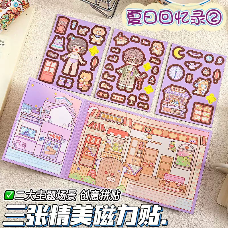 小麻薯新款磁力贴安静书夏日回忆录免裁剪迷你diy高颜值女孩儿童磁吸立体书贴纸装饰可爱创意手帐素材贴纸