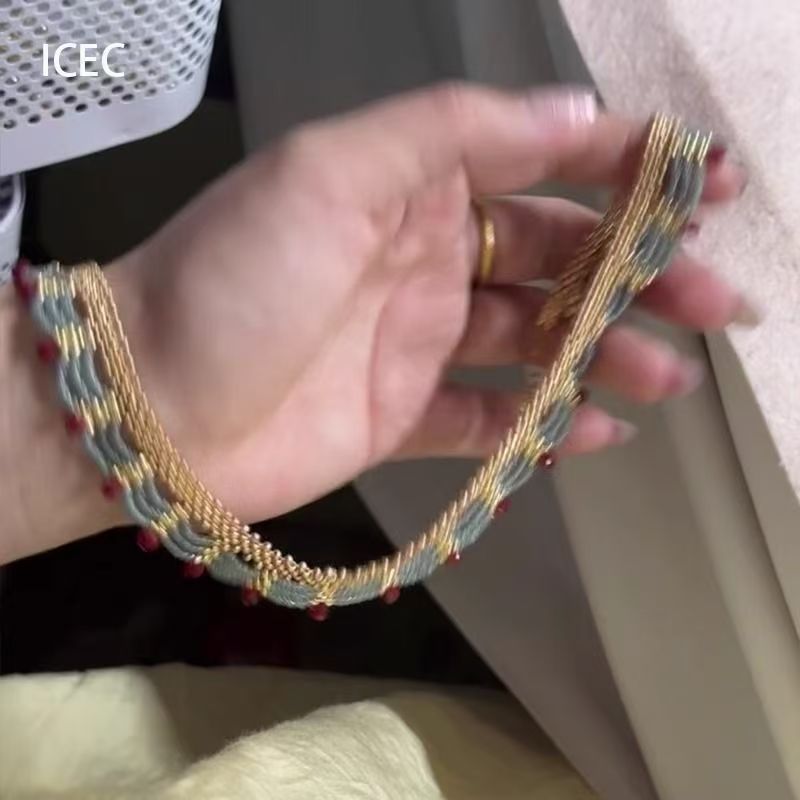 多层气质新中式撞色串珠项链夏天精致蕾丝红蓝民族风高级感锁骨链