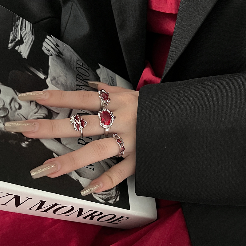 刊赛红宝石戒指女高级感ins百搭冷淡指环男小众设计感单身食指戒