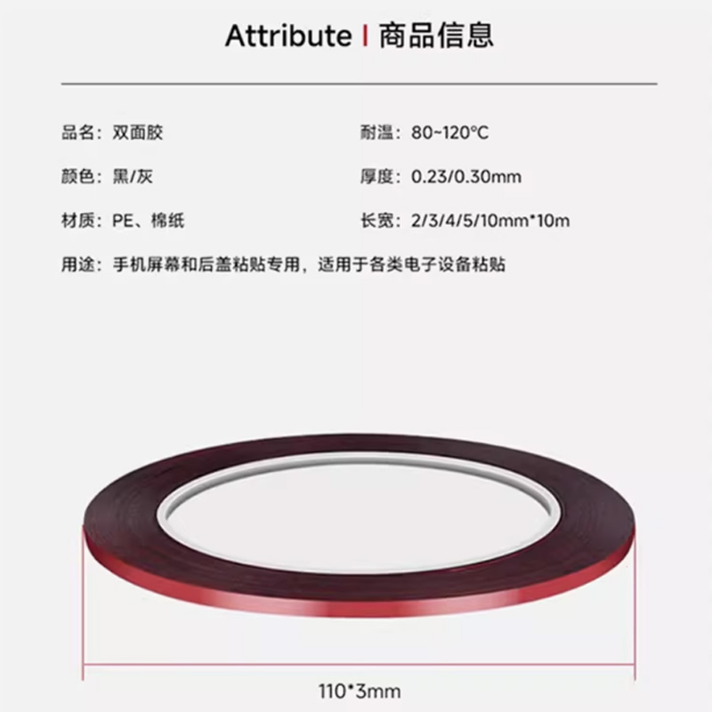 0.23双面胶厚度定制款曲面液晶屏专用粘后盖贴中框玻璃常用胶黑胶