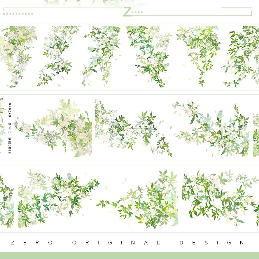手帐分装胶带020白木香ZERO原创景花树枝古风素材账流麻贴纸咕卡