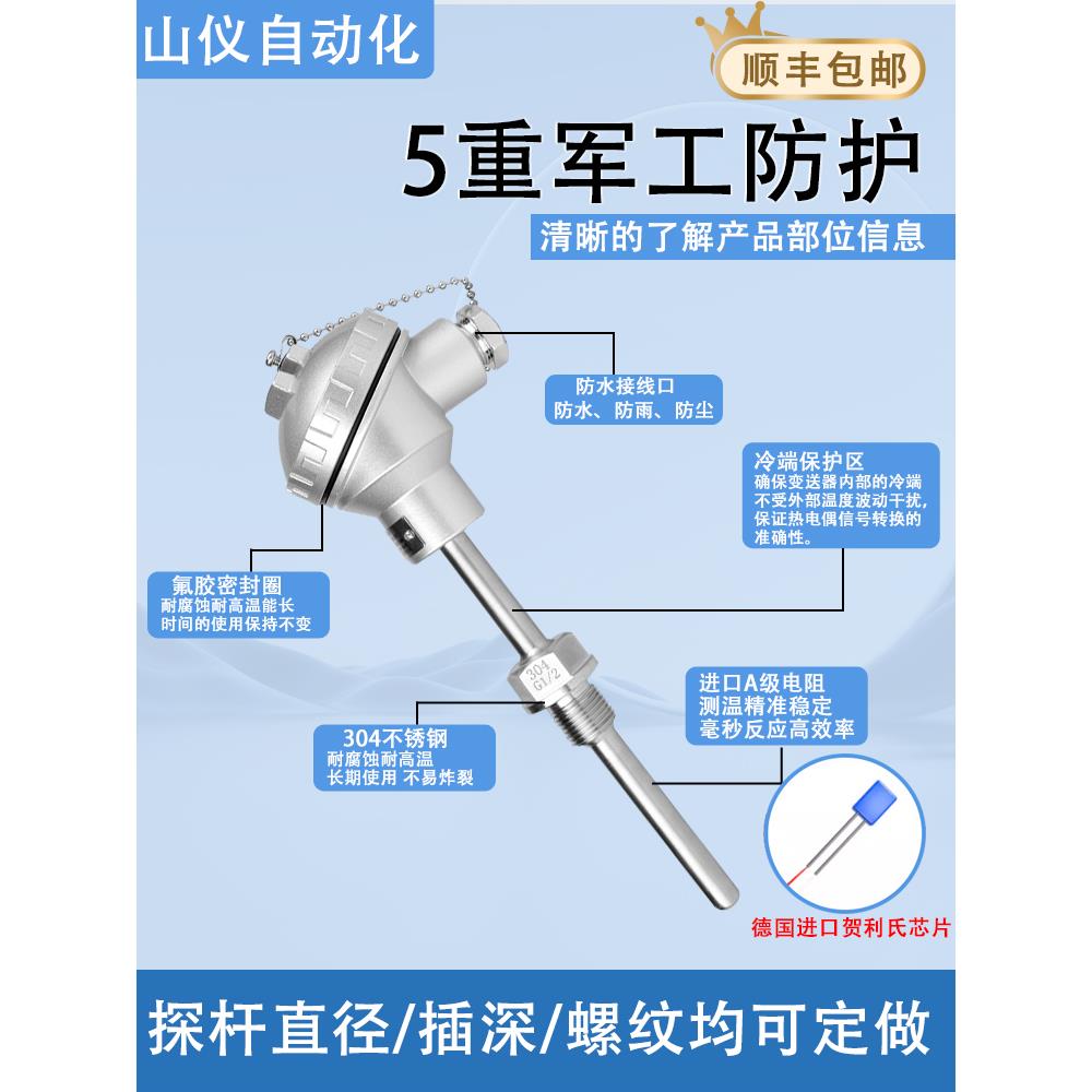 耐高温Pt100温度传感器装甲铂热阻k型热电偶集成温度变送器