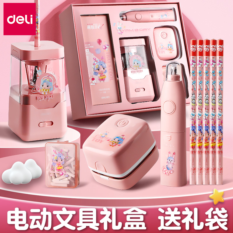 【生日礼物】得力电动文具套装女孩送亲戚送侄子礼物幼升小礼盒大礼包儿童一年级入学仪式感必备小学生高颜值