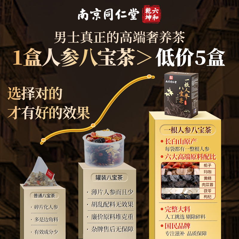 同仁堂八宝茶人参强身固精枸杞茶五宝九宝男士熬夜补精强肾养生茶