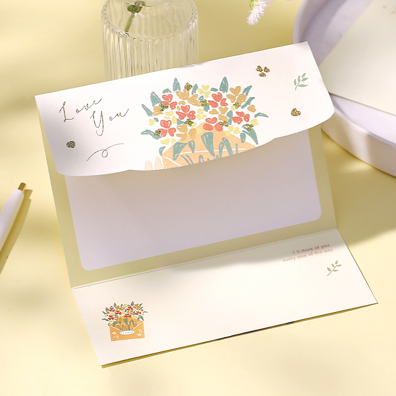 礼研社 三折烫金贺卡《掌心间的温柔》生日贺卡女生高级感信封贺卡感谢贺卡折叠贺卡精致贺祝福卡片留言贺卡