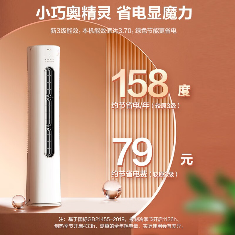 奥克斯空调柜机大2匹新能效变频冷暖俩用家用大风量节能立式省电