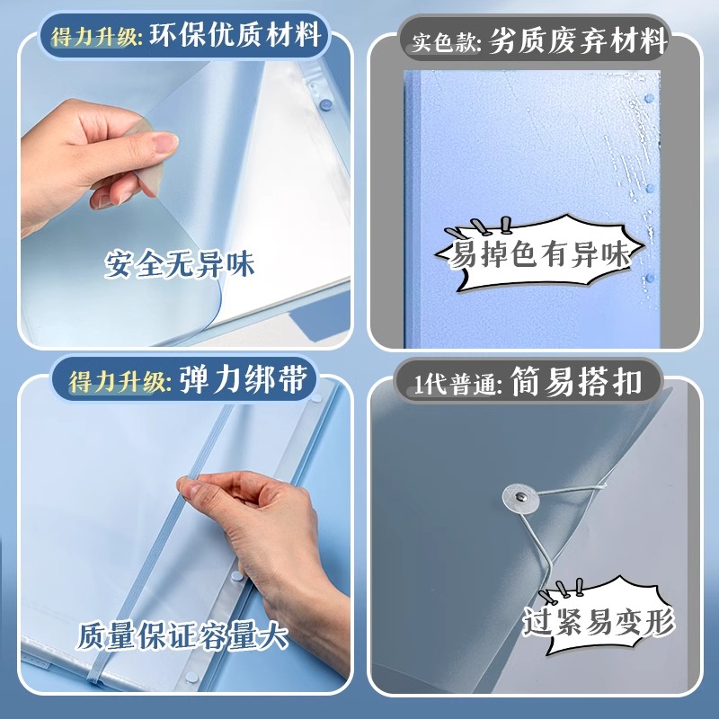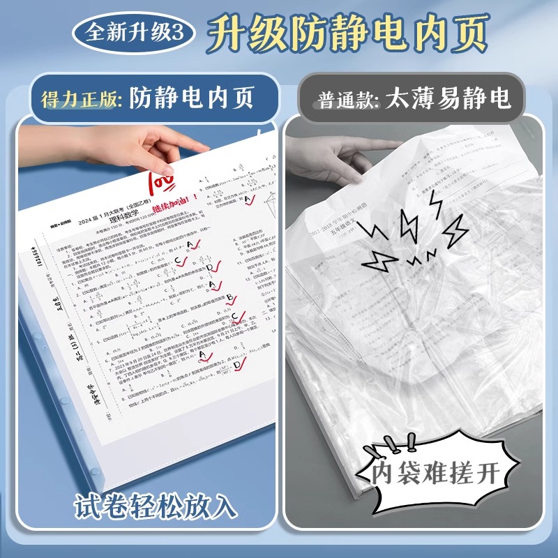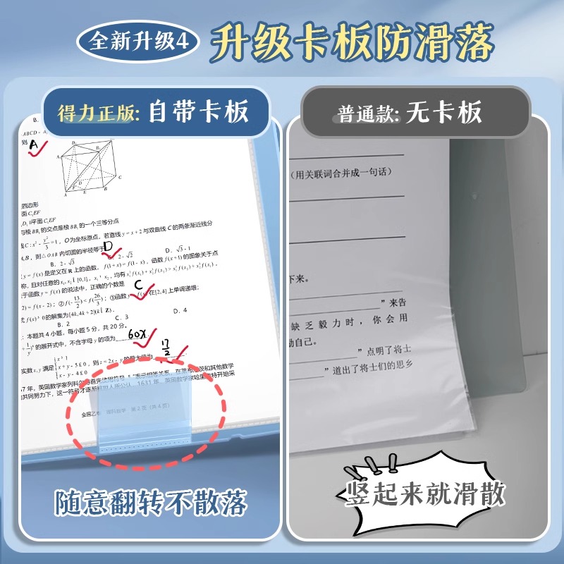得力A3试卷收纳袋试卷夹文件夹试卷整理神器小学生用透明插页多层放装卷子的夹子A4考卷资料册初中生科目分类