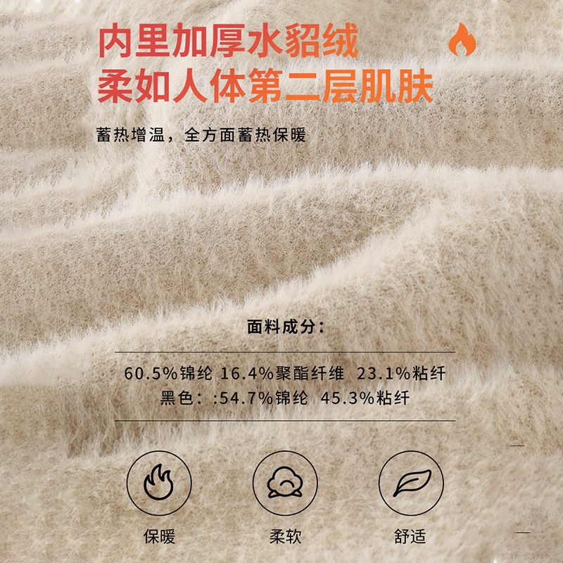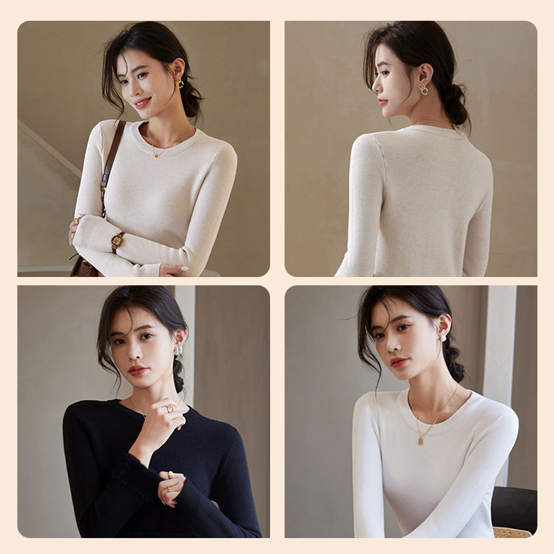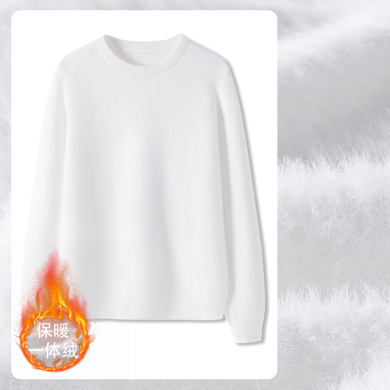 JR真维斯燕麦色圆领一体绒毛衫2025春季新款锁温保暖加绒修身女装