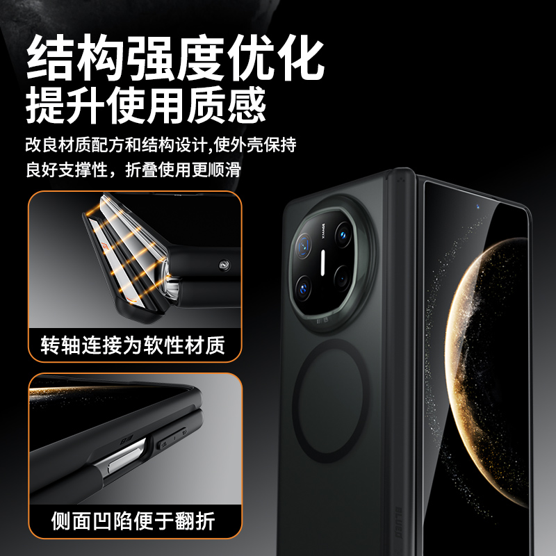蓝猩适用于华为mateX6手机壳Matex5典藏版橙标肤感转轴边框保护套X3中轴磁吸铰链Mate折叠屏纤薄商务磨砂透明