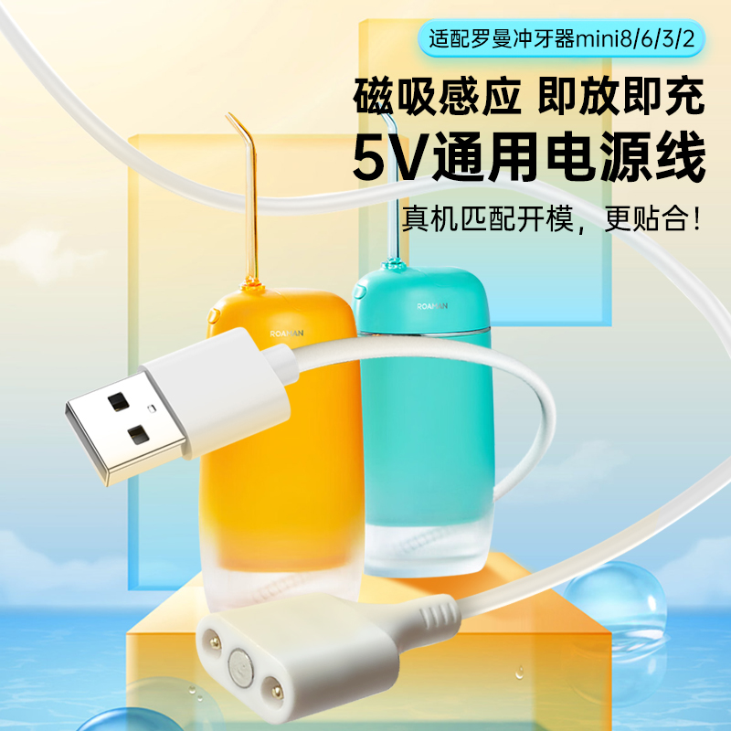 适用于罗曼冲牙器充电线充电器mini8/mini6/mini2/mini3电动水牙线洗牙器磁吸充电器线