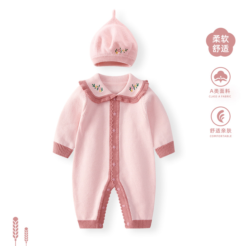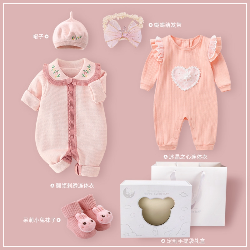 婴儿衣服秋装新生女宝宝连体衣幼儿百天毛衣套装秋冬公主外出爬服