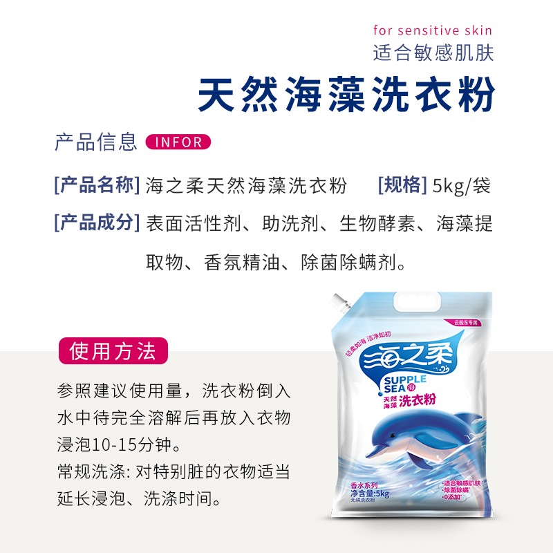 海之柔天然海藻洗衣粉5kg深层洁净持久留香亮白增艳三大叔推荐