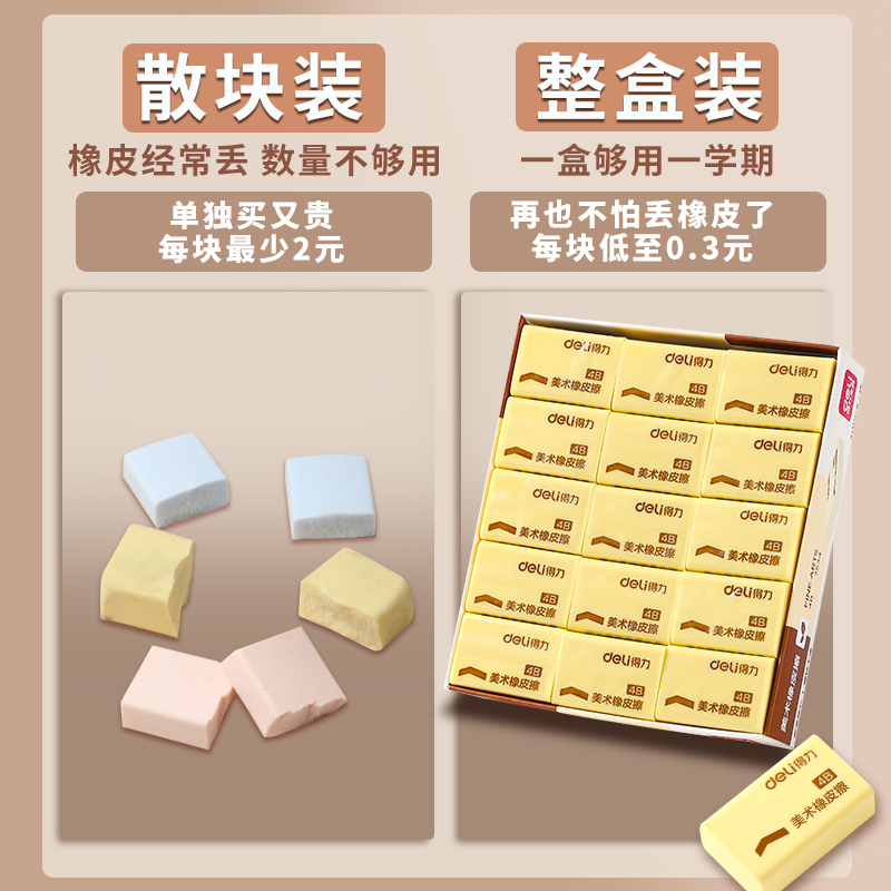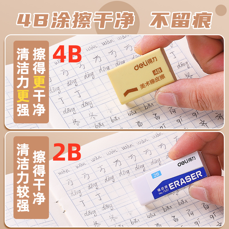 得力4b小学生橡皮擦素描无屑像笔擦专用超干净不留痕儿童擦得干净安全无毒幼儿园美术生象像皮擦铅笔聚干净