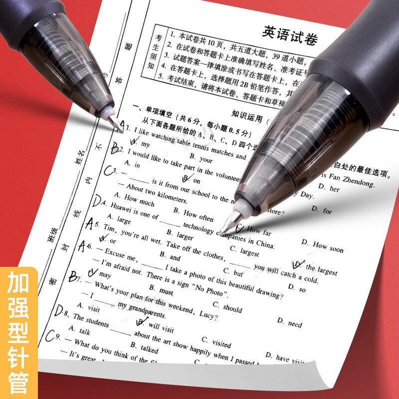 晨光官方中性笔Q7水笔子弹头学生用刷题笔签字笔水性碳素黑笔0.5mm笔芯考试专用教师红色圆珠笔办公用品文具