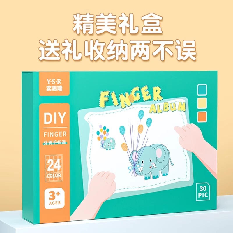儿童手指印画画图册幼儿园手掌点画印泥绘画工具颜料无毒24色画本