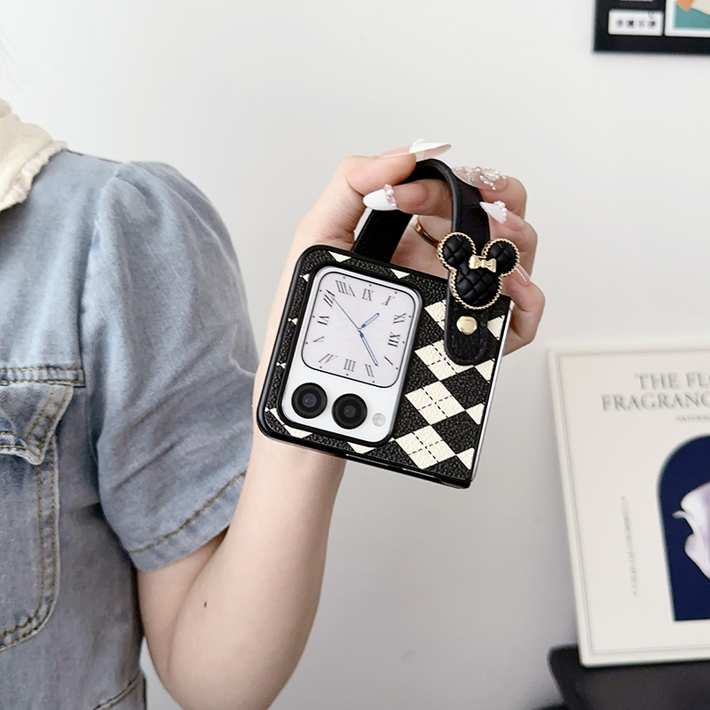 简约格子适用华为nova flip手机壳P50pocket2小折叠三星Zflip3/4/5/6皮质腕带女OPPOfindn2/n3/vivoXflip防摔
