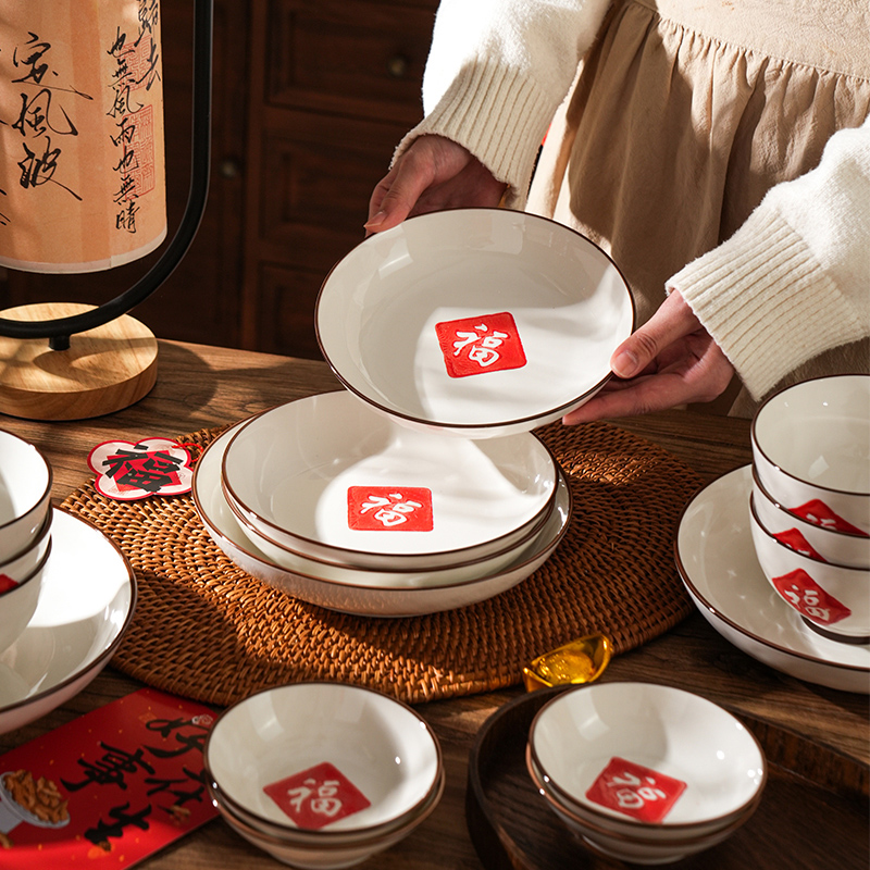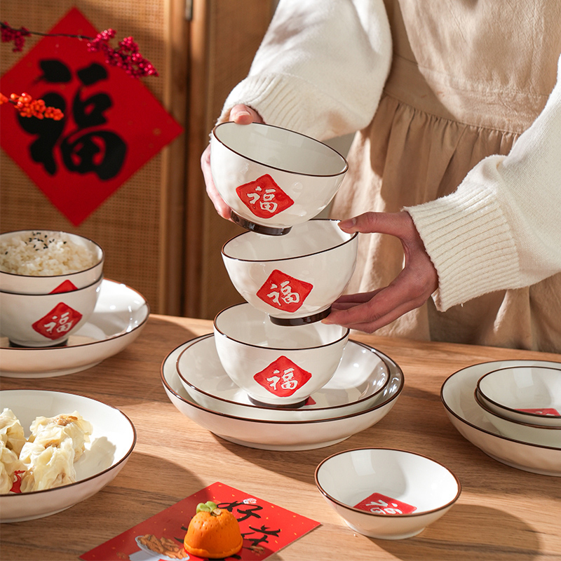 舍里中式喜庆釉下彩碗盘餐具特别好看的米饭碗陶瓷碗碟餐具菜盘子